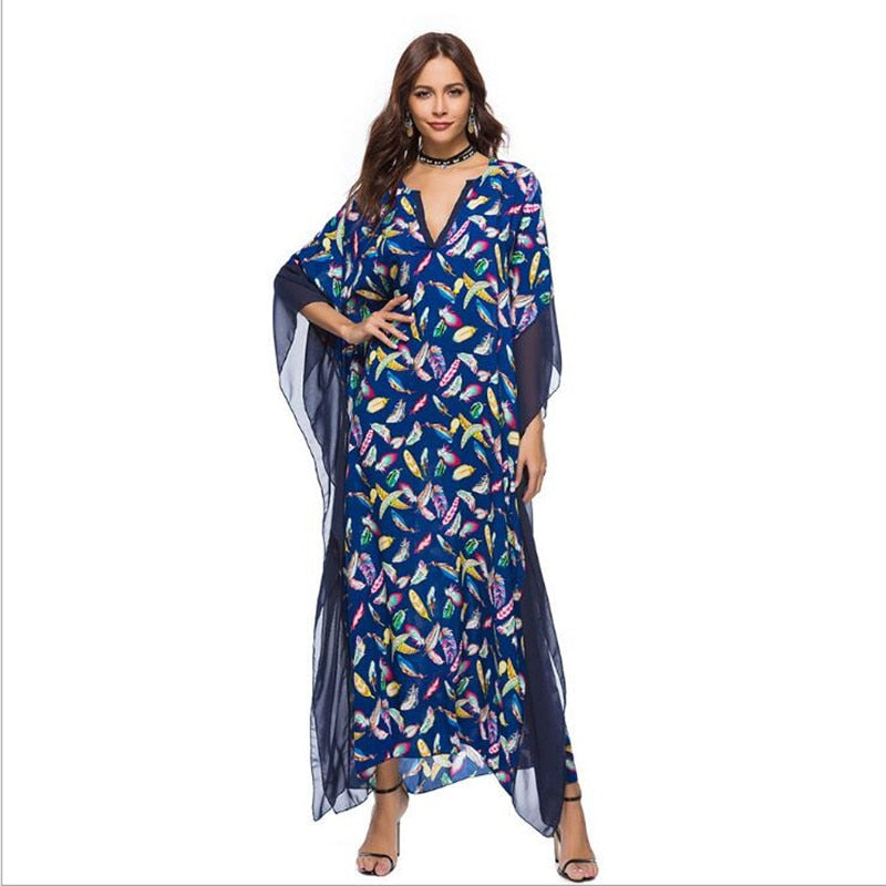 2019Fashion Boho Tropical Floral Print Summer Long Maxi Dress Women Batwing Sleeve V Neck Loose Beach Tunic Dresses Vestidos