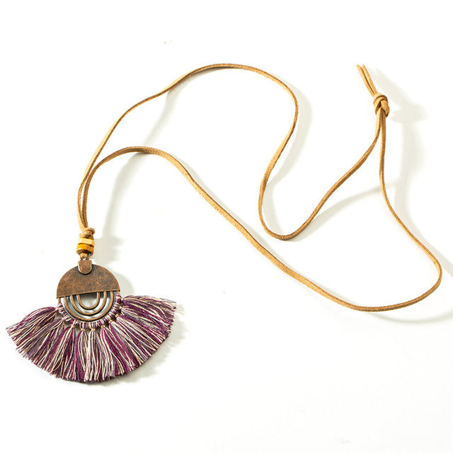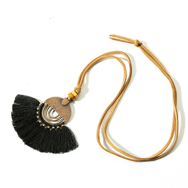 Ethnic Long Leather Women's necklaces Bohemia Round Hollow Tassel necklace for women Vintage Charm Sweater chain 2019 NEW