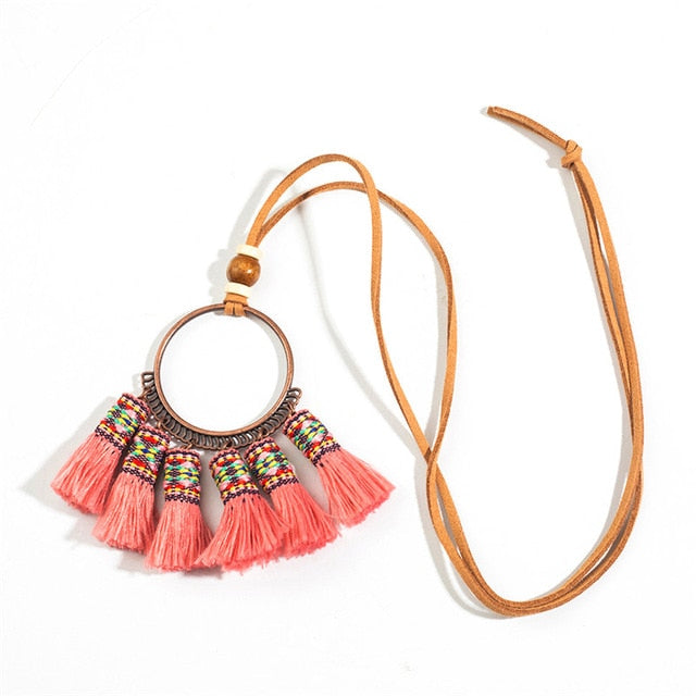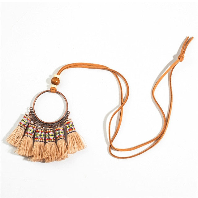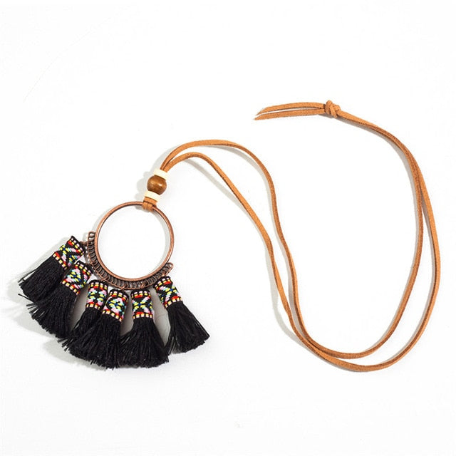 Ethnic Water Drop 5 tassel Women's necklace Bohemia Long Leather chain Sweater chain Vintage Long tassel necklaces for women