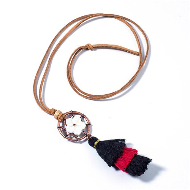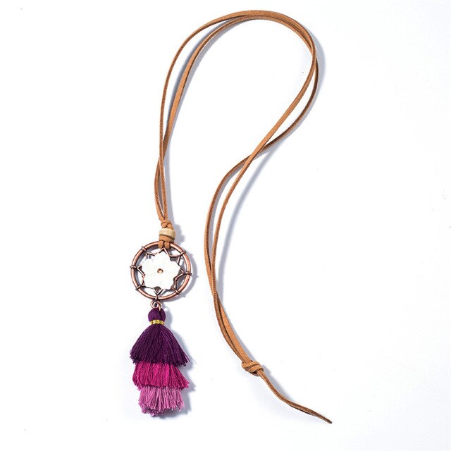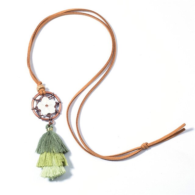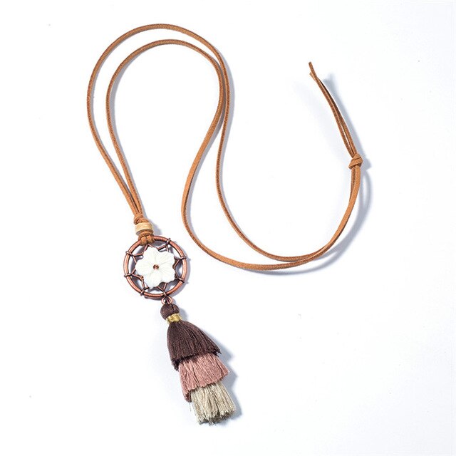 Long Leather chain Sweater chain Colorful Long tassel Pendant Ethnic necklaces for women Tassel necklace Long necklace 2019