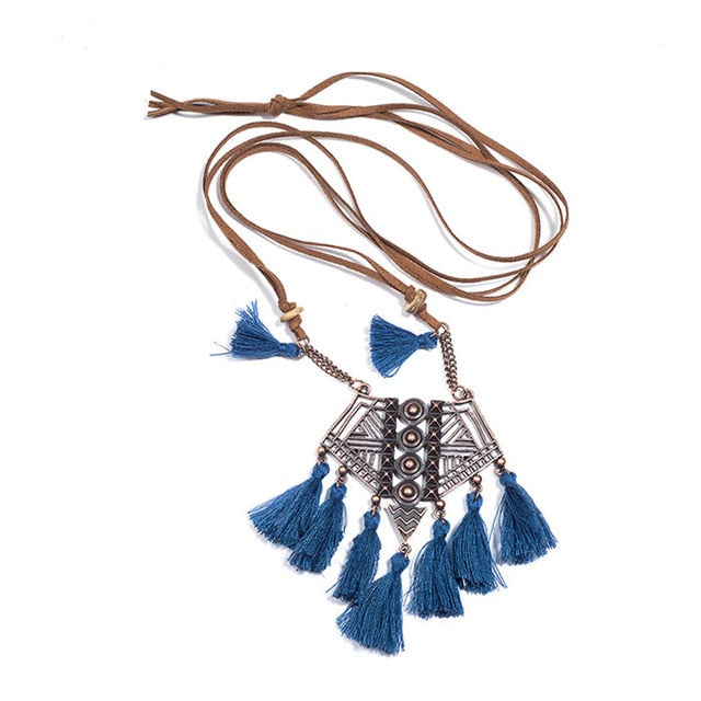 Long Women's necklace Ethnic Leather chain Sweater chain Long tassel pendant necklaces for women Vintage Bohemia Tassel necklace